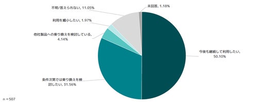 AI-OCRの今後の利用については、「今後も継続して利用したい」と回答した企業が50.10%で最も多い結果となりました。