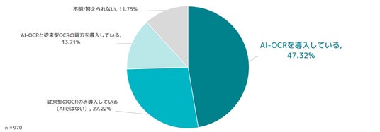 一方で、「従来型OCRのみ導入している(AIではない)」は27.22%、「AI-OCRと従来型OCRの両方を導入している」は13.71%となりました。