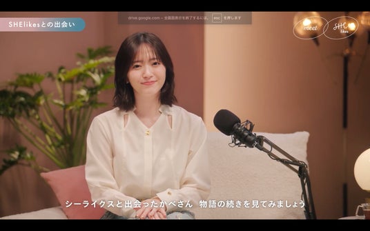 女性向けキャリアスクール「SHElikes(シーライクス)」は、これまで累計20万名以上(※)の女性のキャリア形成を支援してきました。本CMでは、3名の受講生の実話をもとに脚本を書き下ろし、ドラマ化したショートムービーです。受講生それぞれがSHElikesとの出会い、それをきっかけに自らの可能性と向き合い、理想の生き方を実現するまでの過程を描きました。受講生本人と鈴木愛理さんがドラマを視聴し、受講生の人生をともに振り返りながら、当時の葛藤や決断、夢を見つけて叶えるまでの喜びを、鈴木愛理さんがインタビューで掘り下げます。