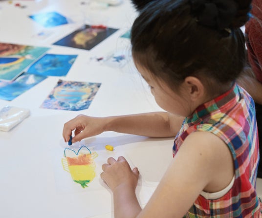 - - 木製の額に500色の色えんぴつを使って、まるで自分が蜂になったような気持ちで色の世界に没頭します。紙とは違う木の描き心地も楽しめます。