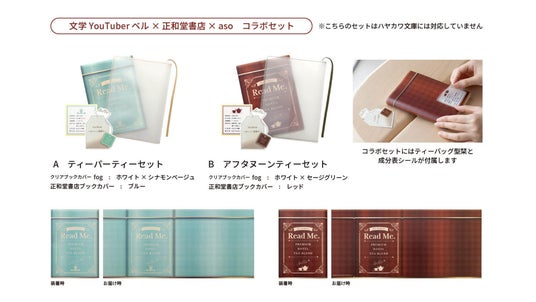 asoのヒット商品である透明なブックカバー「Clear Bookcover fog (クリアブックカバーフォグ)」と正和堂書店のブックカバーを、文学YouTuberベルがプロデュースした限定セット2種を販売します。