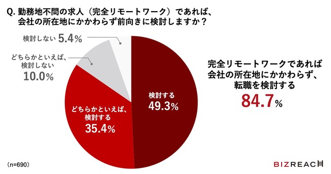 ■約85%のビジネスパーソンが、勤務地を問わない求人(リモートワーク)であれば会社の所在地にかかわらず転職を検討