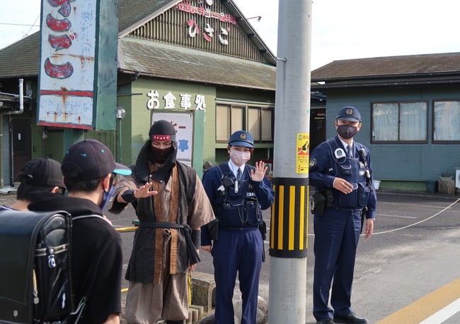 当日は、全校一斉下校日。同校南側グラウンドにて伊賀忍者が児童にメッセージやパフォーマンスを送った後、同校の西門付近において合同見守り活動を実施します。