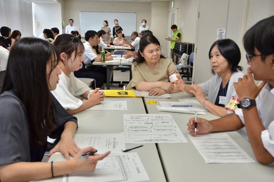 また、グループワークでは、20代の若手教員からベテラン教員、地域関係者らが4~5人のグループになり、それぞれの活動や経験などを話し、参加者たちは真剣な様子で話に聞き入ったり、共感を深めていました。