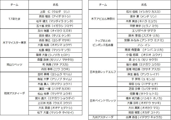 Tリーグでは、2022-2023シーズン 登録完了選手を以下の通りお知らせいたします。