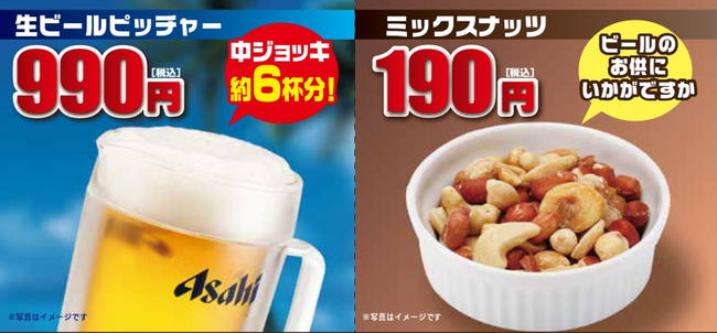 内容:アサヒ スーパードライ 生ビール(中) 1杯 190円(税込)