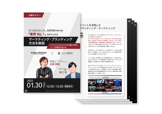 コンテンツPR・コンテンツマーケティング・コンテンツセールスを総合支援する、株式会社IDEATECH(本社:東京都港区、代表取締役社長:石川友夫)は、株式会社グローバルプロデュース(本社:東京都渋谷区、代表取締役社長:光畑 真樹)と共同で、2024年1月30日(木)12:00-13:00に「セールスフォース、GAFAMの事例で探る「業界No.1」を作り上げたマーケティング・ブランディング方法を解説~イベントとコンテンツの二軸から見るトップ企業の手法とは~」と題するオンラインセミナーは、BtoBマーケティングにおけるソートリーダーシップ戦略や、リアルイベントとコンテンツマーケティングの掛け合わせによる具体的な手法が紹介され、参加者の新たな視点を生み出す有意義なイベントとなりました。