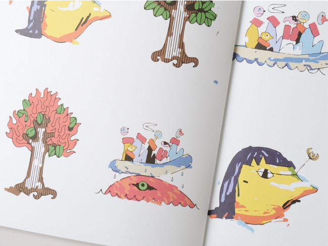 作品集『STRUGGLE IN THE SAFE PLACE』は、2022年4月にPARCEL(東京)にて開催された個展「Struggle In The Safe Place」で発表された大型のペインティング、ドローイング作品を148 ページにわたり詳細に収録。複数の絵の連続性によって生み出される動きや、思いもよらない形態の変化、異なるイメージを並置したときに立ち上がる関係性といった、アニメーション特有の表現に軸足を置きながら、絵画という媒体の可能性を広げています。