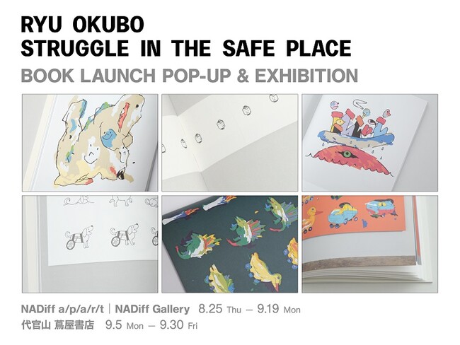 NADiff a/p/a/r/t(東京都渋谷区恵比寿)は、アーティスト・オオクボリュウによる作品集『STRUGGLE IN THE SAFE PLACE』の刊行を記念し「RYU OKUBO / STRUGGLE IN THE SAFE PLACE BOOK LAUNCH POP-UP & EXHIBITION」を8月25日(木)から9月19日(月・祝)の期間に、地下1階NADiff Galleryと1F階店内にて開催します。