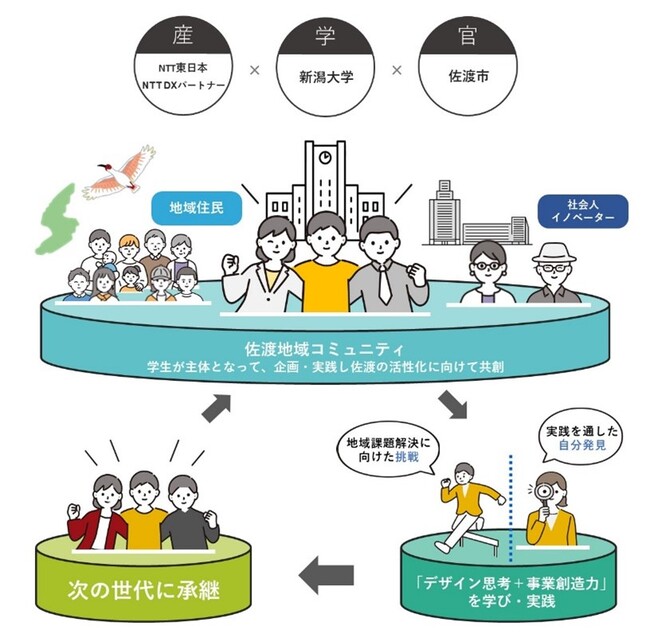 新潟県佐渡市(以下「佐渡市」)、国立大学法人新潟大学(以下「新潟大学」)、東日本電信電話株式会社新潟支店(支店長:徳山隆太郎、以下「NTT東日本」)、株式会社NTT DXパートナー(代表取締役社長:遠藤玉樹、以下「NTT DXパートナー」)は、学生エンパワーメント※1と佐渡市の課題解決を両立する佐渡イノベーション・プログラム(トライアル)を実施します。本事業はNTT東日本・佐渡市・新潟大学の連携協定※2に基づき推進する事業です。