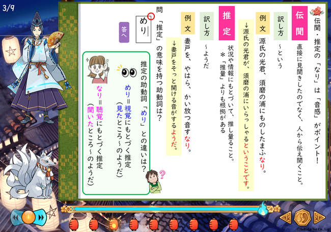 今回リリースした「高校古文・漢文」コンテンツでは、基礎となる文法・句法をスモールステップで確実に理解することを重視しております。そのうえで、文法・句法の知識を読解の中で活かせるように、段階的に練習していくカリキュラムとなっています。古文単語や古文常識などもアニメーションで楽しく記憶に定着させていくつくりにしており、ゴロ合わせなどの無理な暗記に頼らず、古文・漢文の本質的な面白さを感じながら学べるコンテンツになっております。