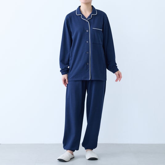 寝返りしやすい構造の血行促進パジャマ「もっちり綿混ストレッチ快眠パジャマ」
