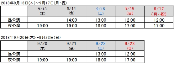 2018年9月13日(木)~17日(月・祝)東京:天王洲 銀河劇場