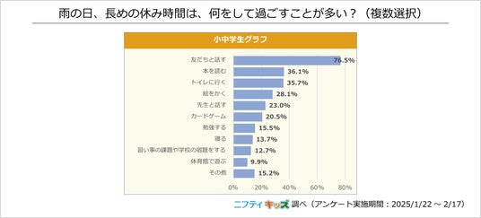 最も多い回答は「友だちと話す」だったことから、天候に関係なく、友だちと話しながら休み時間を過ごしていることがわかりました。