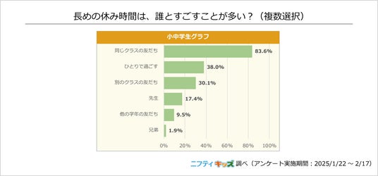 83.6%の小中学生が、長めの休み時間を「同じクラスの友だち」と過ごすと回答しました。