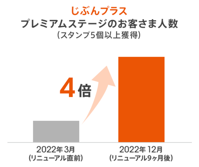 ●お客さま優遇制度「じぶんプラス」は、プレミアムステージのお客さま人数が4倍に増加
