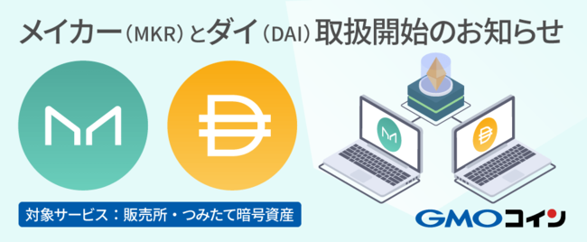 この度GMOコインは、「販売所」と「つみたて暗号資産」にてメイカー(MKR)とダイ(DAI)の取り扱いを開始いたしましたので、お知らせいたします。