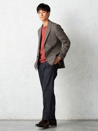 ■スマートさの中に抜け感のあるリラックスシルエットとブラウンカラーで大人な印象を表現