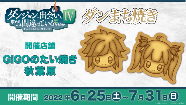 GiGOのたい焼き秋葉原にて『ダンジョンに出会いを求めるのは間違っているだろうかIV』とコラボレーションしたコラボたい焼き『ダンまち焼き』を6月25日(土)より発売いたします。