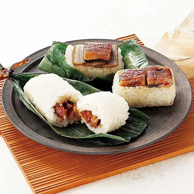 もち米とうなぎの蒲焼を、笹で巻きしめた飯蒸しです。蒲焼の旨味、もち米のほのかな甘みと、笹の香りがひとつとなり、風雅な美味を味わえます。一口サイズの「お凌ぎ笹むし」とごぼうを添えた「お凌ぎ八幡むし」との詰め合わせです。