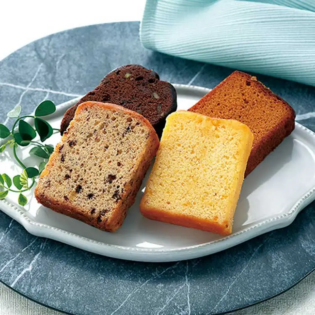 濃厚なバターの風味に、ショコラ、オレンジ、キャラメルなどアクセントとなる素材を合わせたケークです。しっとりと繊細な食感で、飽きのこない味わい。フランスを代表するショコラティエの技をお楽しみください。