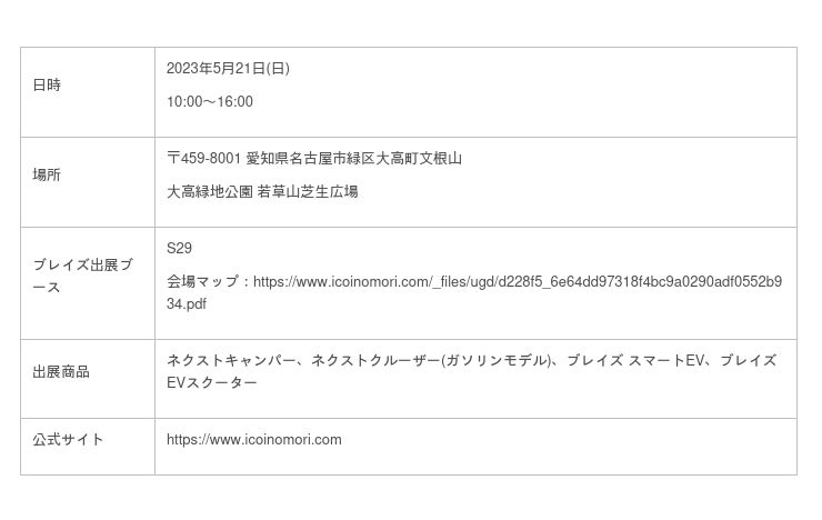 株式会社ブレイズ(愛知県名古屋市、代表取締役:市川秀幸、以下ブレイズ)は、2023年5月21日(日)に名古屋市緑区の「大高緑地公園 若草山芝生広場」にて開催される「憩の森マルシェ」に出展することをお知らせします。