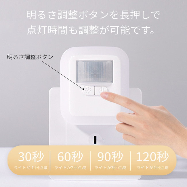 明るさは10段階、ライトの点灯時間は4段階に調整可能です。