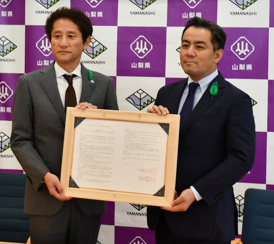 山梨県(知事:長崎幸太郎)と三井物産株式会社(本社:東京都千代田区、代表取締役社長:堀 健一)は令和7(2025)年5月22日、森林経営活動によるCO2吸収量を国が認証し、取引の対象とする「J-クレジット」制度に基づき、県有林が吸収する二酸化炭素(CO2)をクレジットとして創出するため、協定を締結しました。CO2吸収量の算定など申請・取得に必要な手続きを共同で行い、令和7(2025)年度中のプロジェクト登録、早ければ令和8(2026)年度からの販売を目指します。