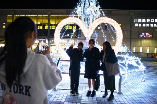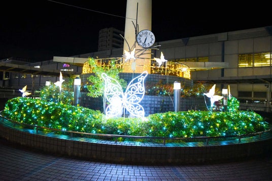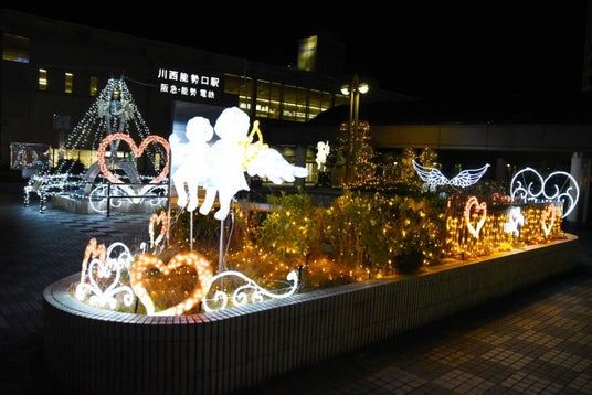 兵庫県川西市では、川西能勢口駅歩行者デッキやバスロータリー前花壇でイルミネーション「手をつなぐ光の和」を市の中心市街地に関連する8団体が協働して12月7日から実施しています。期間は2025年2月末までです。