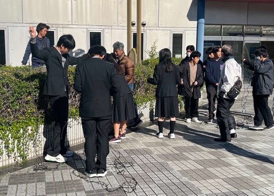取り付け作業は市内にある県立高校の生徒たちも協力して行いました。