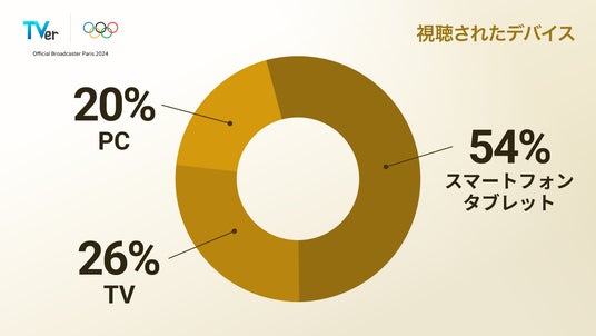TVerでパリ2024オリンピック(TM)を視聴されたデバイスの割合(※6)は、スマートフォン・タブレットが約54%と多数を占める中、テレビアプリでの視聴が約26%となりました。時間や場所にしばられることなく、移動中や外出先でご覧いただいたり、テレビの大画面で競技をお楽しみいただいたりと、自由なスタイルで観戦されたことがうかがえます。