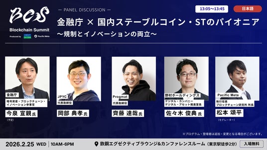 株式会社 Pacific Meta(本社:東京都港区、代表取締役:岩崎 翔太、以下「Pacific Meta」)と株式会社クレディセゾン(本社:東京都豊島区、代表取締役(兼)社長執行役員 COO:水野 克己、以下「クレディセゾン」)は、2026年2月25日(水)に開催するブロックチェーンに関する国際カンファレンス「Blockchain Summit 2026 by Credit Saison and Pacific Meta」(以下「本イベント」)において、第一弾となる登壇者・セッション情報を発表いたします。