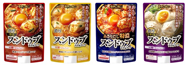 モランボン株式会社(本社:東京都府中市 代表取締役社長:全 峰 碩)は、日配売場向け商品として「スンドゥブチゲ用スープ 濃厚辛口」「スンドゥブチゲ用スープ 濃厚マイルド」「あさりだし特濃 スンドゥブチゲ用スープ」「スンドゥブチゲ用スープ 濃厚牛テール」の4品のテレビCMを2023年10月16日(月)より全国4エリアで順次放送いたします。