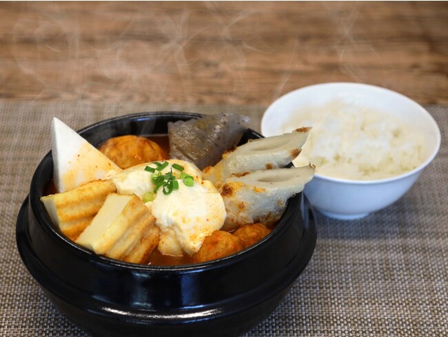 さつま揚げやもち巾着といったおでん具材をお好みで一緒に煮込むだけで完成する、ボリューム満点メニューです。