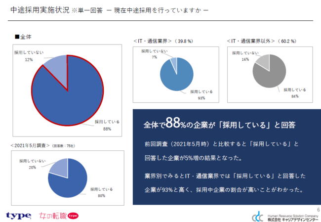 ひとつ上を目指す人のキャリア転職サイト『type』、正社員で長く働きたい女性のための転職サイト『女の転職type』は、中途採用担当者様を対象に「中途採用活動状況」に関するアンケート調査の回答を募集します。