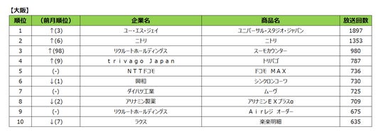 2025年6月のエリア別テレビCMランキングは地域性が色濃く表れる結果となりました。東京はニトリが首位、大阪はユニバーサル・スタジオ・ジャパンが他を圧倒。名古屋では興和「シンクロンコーワ」が好調な一方、福岡は地元「高山質店」がトップを守り、札幌ではベルコ「アールベルアンジェ」が急浮上しました。全国展開するニトリや興和の強さは共通ですが、エンタメ、地域密着型サービスなど各エリアのニーズや特色に応じた活発なCM戦略が展開された月となりました。