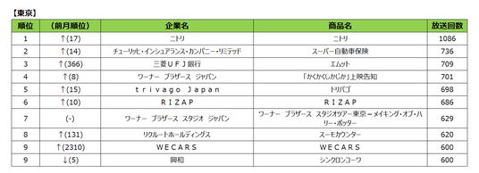 特筆すべきは、リクルートホールディングス「スーモカウンター」が3位、ユー・エス・ジェイ「ユニバーサル・スタジオ・ジャパン」が4位と大幅に順位を上げたこと。さらに、WECARS 「WECARS」は前月5403位から14位へ驚異的な上昇を見せました。NTTドコモ「ドコモ MAX」やダイハツ工業「ムーヴ」なども新規でトップ10入りしています。