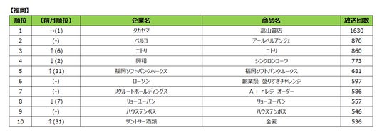 2025年6月度 エリア別テレビCM放送回数ランキング
