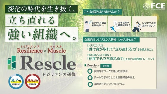 この背景には、若手社員が「失敗を過大なダメージとして認識し、再挑戦を避ける傾向」が一因として挙げられます。ハラスメント対策や働き方改革が進む一方で、小さな失敗でも大きな痛手として受け止め、「失敗したくない」「怒られたくない」という守りの姿勢が強まっています。こうした課題に対し、FCEは「折れない心」ではなく「しなやかに立ち直る力=レジリエンス」を鍛えることが重要と考え、企業向けレジリエンス研修「レッスル(R)」を開発しました。