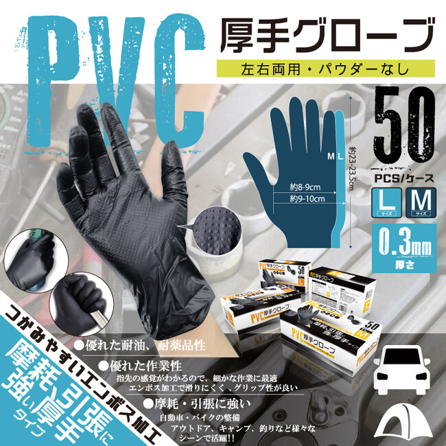株式会社ヒロ・コーポレーション(福岡県北九州市)から、PVC厚手グローブ 50枚入り HDL-8866M/HDL-8873Lが1月下旬に発売される。