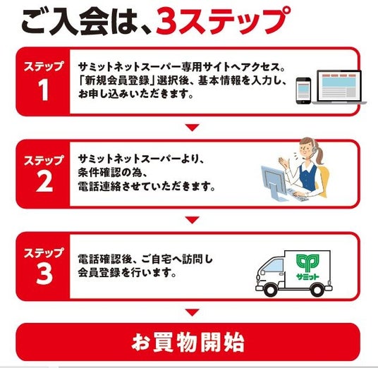 スマートフォンやパソコンからご注文いただいた商品を、サミットの従業員がお客様の代わりにサミットの店舗で商品を選定し、お客様のご自宅にお届けします。