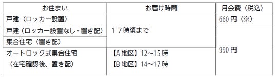 但し、戸建で敷地内に商品を保管する鍵付きロッカー(保管庫)を設置いただける方は、月会費が660円(税込)となります。
