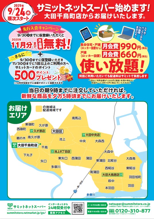サミットストア大田千鳥町店は、2025年9月24日(水)より、「サミットネットスーパー」を開始します。