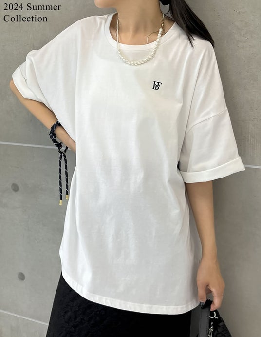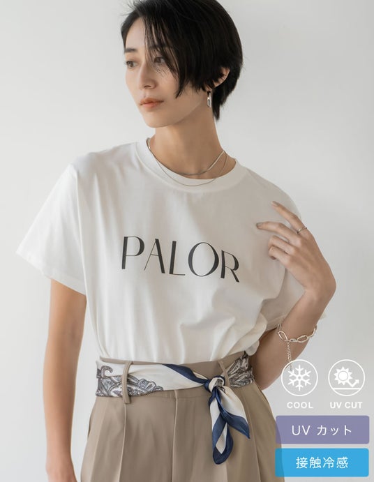 [細めロゴで上品な着こなしに][着た瞬間ひんやり][接触冷感][UVカット]ラバープリントロゴTシャツ