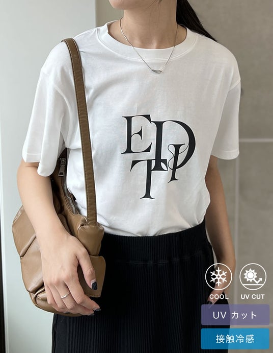 [着た瞬間ひんやり][接触冷感][UVカット][神山まりあさん着用]スタックロゴプリントTシャツ