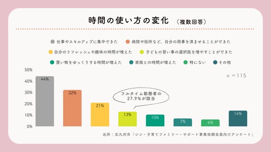 この結果は、働く親の約半数が時間の使い方の変化として挙げた「仕事やスキルアップに集中できた」(44.3%)という回答にも表れています。
