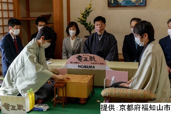 また2021(令和3)年10月~11月には、福知山青年会議所などにより、福知山城公園を舞台に、光をテーマとした展覧会が実施されました。2022(令和4)年11月8日、9日には第35期竜王戦第4局福知山城対局が行われ、藤井聡太竜王と広瀬章人八段が対局した福知山城天守閣内の特設対局室を、2023(令和5)年1月30日まで特別公開しています。