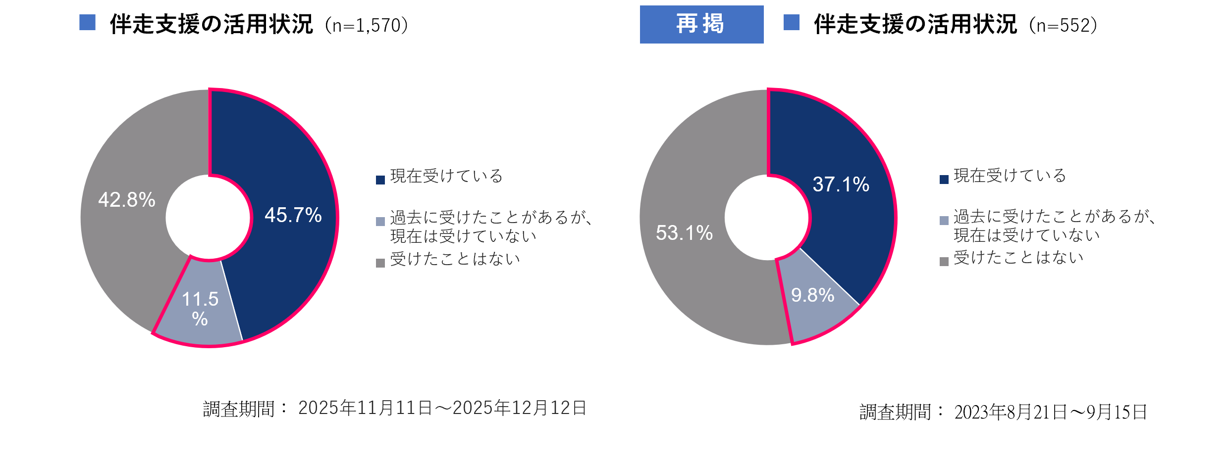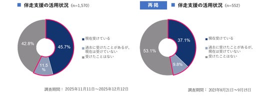 本調査については、2023年8月にも同様の内容で調査を実施しており、「現在受けている」(37.1%)、「過去に受けたことがあるが、現在は受けていない」(9.8%)を合わせ、伴走支援の活用経験がある企業は5割以下であった。