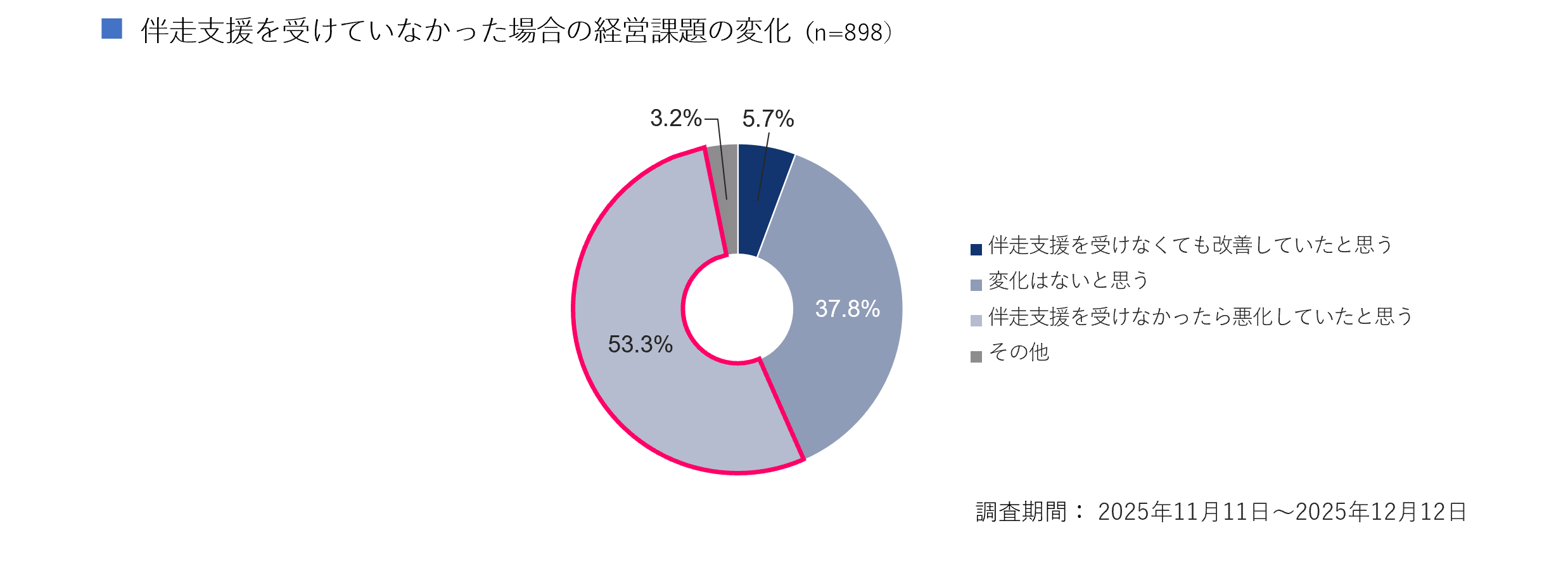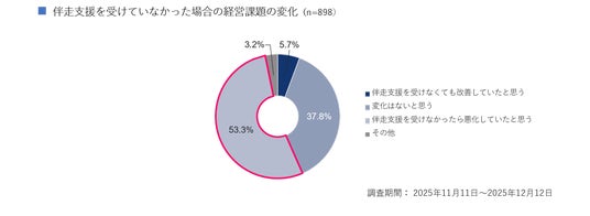 ・「伴走支援を受けなかったら悪化していたと思う」(53.3%)と約半数以上の企業が伴走支援の効果を実感している。