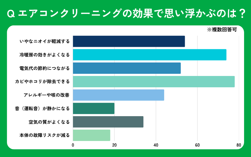 エアコンクリーニングで改善されそうな効果として思い浮かぶものをすべて選んでください。(複数回答可能)